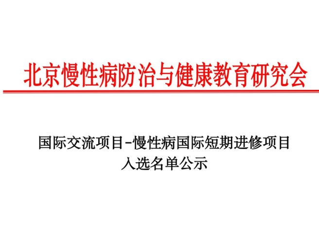 国际交流项目-慢性病国际短期进修项目入选名单公示