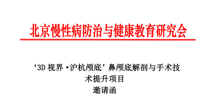 邀请函|‘3D 视界·沪杭颅底’鼻颅底解剖与手术技术提升项目